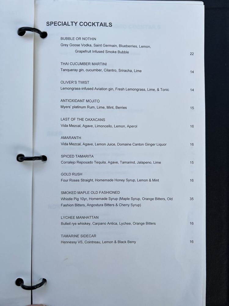 Tamarine Restaurant Menu
